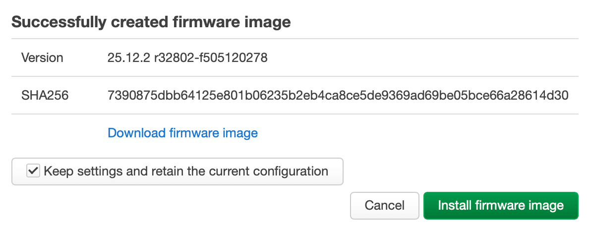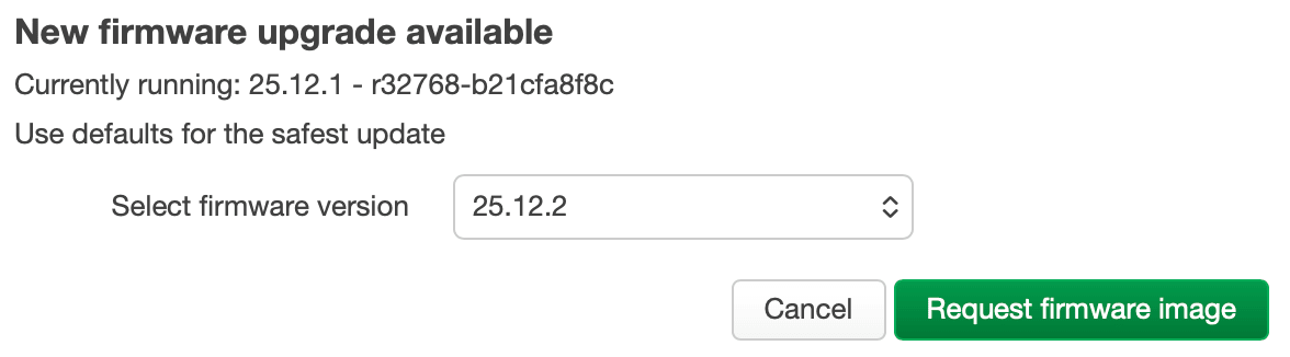 Searching for an available sysupgrade of 25.12.1 - r32768-b21cfa8f8c