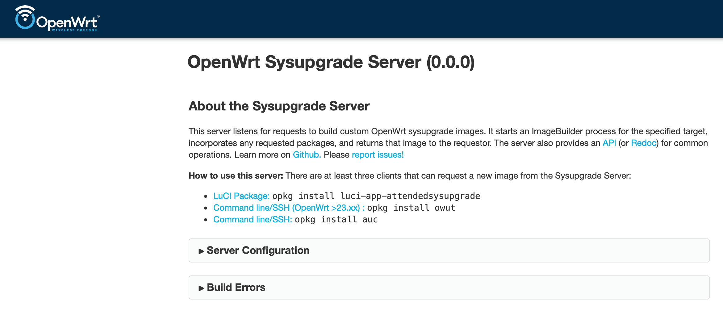 Dobra wiadomość jest taka, że OpenWrt utrzymuje oficjalną, zdokeryzowaną wersję serwera Attended Sysupgrade. To ogromne ułatwienie!